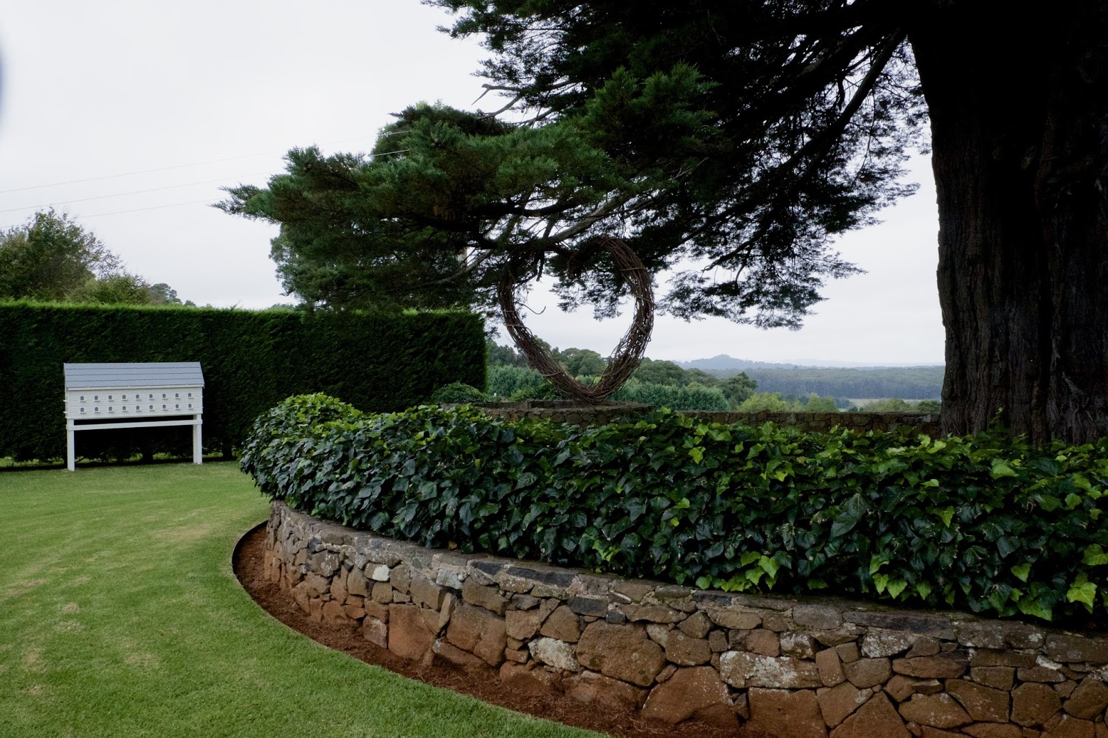 My dear friend Trish Muir, opened her garden in support of this event and what a treat it was! The immaculate, intimate garden that surrounds their pretty weatherboard house revealed all sorts of treasures! The garden on their estate, Old Fernbrook Farm, was originally designed by Peter Fudge . Over the years, Trish has added numerous beautiful outbuildings, a barn, and many more garden features. Trish is a lady of great style and impeccable taste and each and every piece in her garden has been found in places all over the world as well as here in Australia. Trish enjoys commissioning Australian artists and is a great supporter of the local community as a whole.